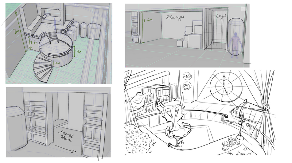 As the project moved from concept to completion, the design evolved beyond the original sketches while preserving its core theme. The finished environment brings that initial idea fully into form.